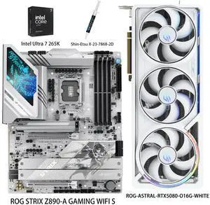 ASUS GPU& Motherboard &Thermal paste & CPU Combo, ROG-ASTRAL-RTX5080-O16G-WHITE Graphics Card, ROG STRIX Z890-A GAMING WIFI S Motherboard, Intel Ultra 7 265K CPU, for AI PC, gaming PC