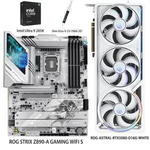 ASUS GPU& Motherboard &Thermal paste & CPU Combo, ROG-ASTRAL-RTX5080-O16G-WHITE Graphics Card, ROG STRIX Z890-A GAMING WIFI S Motherboard, Intel Ultra 9 285K CPU, for AI PC, gaming PC