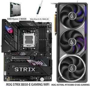 ASUS GPU& Motherboard &Thermal paste & CPU Combo, ROG-ASTRAL-RTX5080-O16G-GAMING Graphics Card, ROG STRIX B850-E GAMING WIFI Motherboard, AMD Ryzen 5 9600X CPU, for AI PC, gaming PC