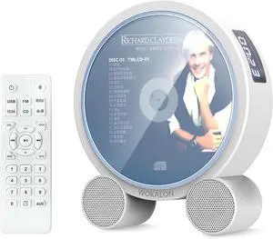 WOKALON Desktop Vertical CD Player Portable with Bluetooth for Home with LCD Screen Display Built in HiFi Speakers Support Timed Music ON/Off FM USB SD