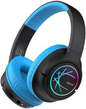 Kids Bluetooth Headphones,Colorful LED Lights Kids Headphones Wireless,74/85dBA Safe Volume,85H Playtime,Fast Charging,Bluetooth 5.2,Over Ear,Built-in Mic for iPad/Tablet/Airplane,Blue