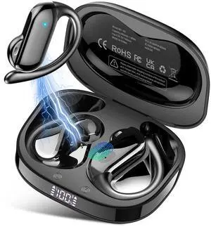 Bluetooth Headset, Wireless Earpiece with ENC Microphone, Single-Ear Bluetooth Earpiece V5.3 with Earhook, 60H Talktime, IP7 Waterproof Hands Free Earphones for for Business/Office, Black