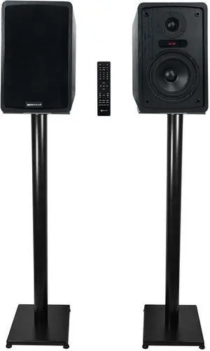 Rockville ELITE-5B Bundle: 5.25 in Powered Bookshelf Speakers with Bluetooth, 200-Watt RMS 800-Watt Peak, RS37B 37 in Steel Bookshelf Speaker Studio Monitor Stands, 2 Items
