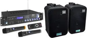 Bluetooth Home Audio Power Amplifier -4 Ch. 3000W & Home Dual Waterproof Outdoor -Speaker System - 6.5" Speakers