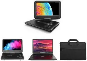 ieGeek 11.5" Portable DVD Player with SD Card/USB Port, 5 Hour Rechargeable Battery, 9.5" Eye-Protective Screen, Support AV-in/Out, All Region - Black and ieGeek Portable DVD Player 12.5", with 10.5" HD Swivel Screen, Car Travel DVD Players 5 Hrs Rechargeable Battery, No Region Restrict Video Player for Kids, Remote Control, Sync TV, USB&SD, Black and Carrying Bag for Boifun 17.5 Inch Portable DVD Player, Travel Laptop Sleeve Bag, Carry On Handle Case for Computer Notebook MacBook, Black and BOIFUN 9.5'' Portable DVD Player for Kids, 7.5'' Swivel Screen, 5h Battery, Region Free USB/SD/DVD, DVD Player for Car Travel