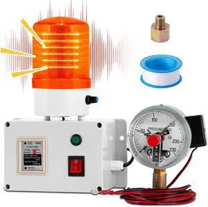High Low Pressure Alarm - 230PSI Air Pressure Warning - 105dB Sound & Flashing Light - 110V