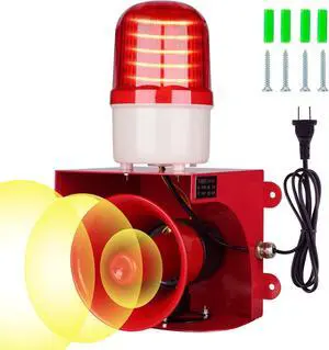 AC110V Industrial Siren Alarm Strobe Light-120dB Loud Horn&Red Beacon Warning Light,Waterproof Indoor/Outdoor Safety Alarm for Emergency,Factory,Office,Fires,Tornado,Intruders,Animal Deterrent