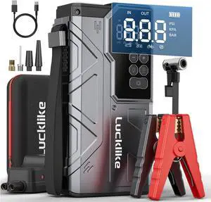 Jump Starter with Air Compressor, 4000A Portable Car Battery Jumper Starter Pack for 10L Gas and 8L Diesel, Tire Inflator with Presssure Detection, 12V Jump Box with 3 Modes Flashlight