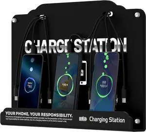 Wall Mounted 8 Port Charging Station with Fast Charigng Cables Multi Device Charging Dock for Office, Hotel & Public Spaces | Compatible with iPhone ipad Smartphone Tablets Android Port (Black)