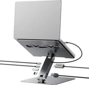 Laptop Stand with USB C 6in1 Docking Station, HDMI 4K@60Hz,Gigabit Ethernet, 100W Power Delivery, 10Gbps 1*USB C 3.2 and 2*USB A 3.2 Compatible with MacBook Pro/Air, iPad Pro, XPS, Thinkpad