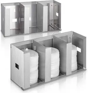 3 Compartments Stainless Steel Cup Dispenser with Adjustable Dividers Silver Cup and Lid Holder Lid Organizer Storage for Cabinet Kitchen Cafe Tea Shop Restaurant, Silver