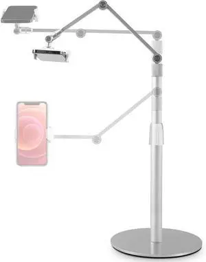 Tablet Phone Overhead Stand, Height & 360 Degree Angle Adjustable, Aluminum Desktop Stand, Compatible with 3.5-11" Cellphone or Tablet Such as iPhone iPad Pro Air Mini, , Nexus(AP-4PS)