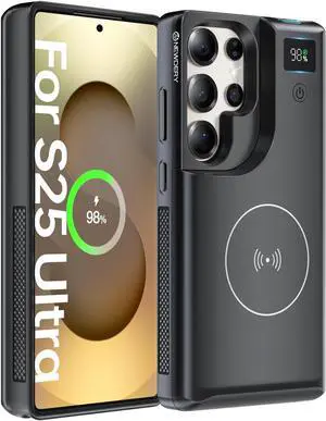 for Samsung Galaxy S25 Ultra Battery Case 6.9",10000mAh Portable Power Bank with LED Display, Qi Wireless Charger & 20W USB C Fast Charging, Sync-Data Supported Black