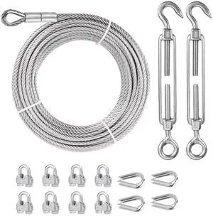 1/8 Wire Rope Kit, 200FT PVC Coated Steel Cable With Tensioner for Garden Plant Support, Clothesline, String Light, Stair Handrail, Ground Anchors