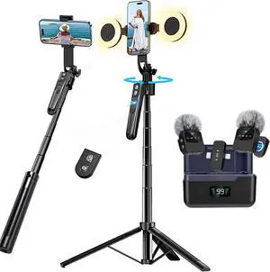 Professional Vlogging Kit for iPhone/Android, 70Auto Face Tracking Tripod for iPhone with Light, 25H Battery Life Wireless Microphones,Content Creator Kit for TikTok/YouTube Starter