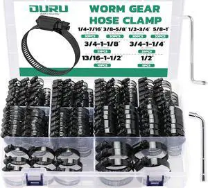 210PCS 304 Stainless Steel Hose Clamps Assortment Kit 1/4"2" Worm Gear Hose Clamp for Radiator,Heater,Automotive,Mechanical Applications,Pipe,Tube,Coolant,Garden