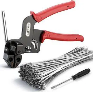 iCrimp One-Handed Stainless Steel Zip Tie Gun with 100pcs 11.8" Metal Cable Ties and Release Tool, WCT-319