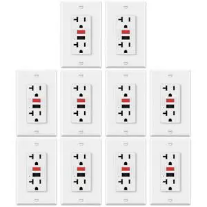 10 Pack GFCI Outlets 20 Amp, Non-Tamper Resistant, Decor GFI Receptacles with LED Indicator, Ground Fault Circuit Interrupter, Wallplate Included, ETL Listed, White