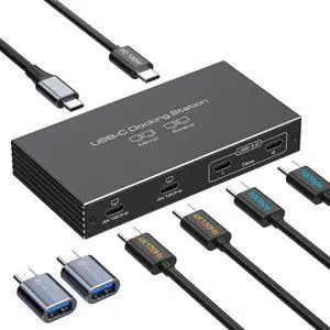 4K120Hz USB C Splitter Dual Monitor Adapter Thunderbolt Splitter 6-in-1 USB C Hub with DP Alt Mode Video Output, 10Gbps Data Transfer 100W PD Charging for Laptop Portable Monitor (Deep Black)