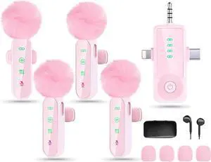 Wireless Lavalier Microphone for iPhone/Android/Camera, Upgraded Mini Microphone with Noise Reduction, Mic for Video Recording, Podcasts, YouTube, TikTok, and Vlogging (4 Mic)