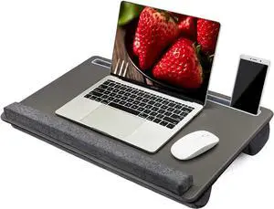 Extra Large Lap Laptop Desk - Full PU Material Mouse Pad Gaming Tray - Portable LapDesk with Phone Holder & Wrist Rest for Notebook, MacBook, Tablet, Bed, Sofa(Gray, Fit Up 17.3-in Laptops)