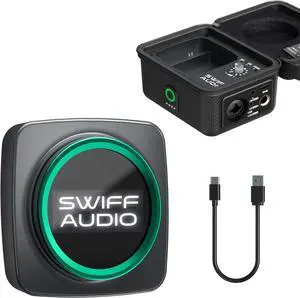 Wireless in Ear Monitor System, 5.8GHz Wireless IEM Switchable Stereo with LED Screen Receiver and Charging Case Transmitter Built-in CUE Mic, 4 Channels Design and Support for One-to-Ten