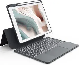 Rugged Keyboard Case for iPad 9th 2022/8th/7th Generation, Magnetic Detachable Case, Premium Trackpad, 15°-180° Adjustable Stand, Portrait/Landscape Backlit Keyboard for iPad 10.2-inch, Gray