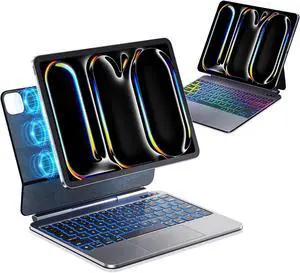Edge+ Keyboard Case for iPad Air 13"(M4/M3/M2, 2026/2025/2024) & iPad Pro 12.9"(3/4/5/6th Gen), Ultra-Slim Detachable Case, Portrait & Typing Modes, 11-Color Backlight, Magnetic Stand, Black