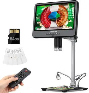 4K 30FPS Digital Microscope with 10.1" Screen, 3840P UHD Video Audio, Pro Boom Arm Stand for Soldering, Electronics Repair, Coin, AD208S-Pro HDMI Electronic Microscope for Adults, 64GB
