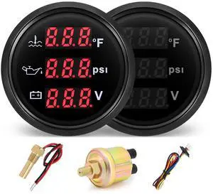 Triple Gauge Set - Water Temp (104°F-248°F), Oil Pressure (0-145PSI), Voltmeter (9-32V), AUTO Gauge with Sensors 2" 52mm 3-in-1 Boat Marine Meter Kit (Black)