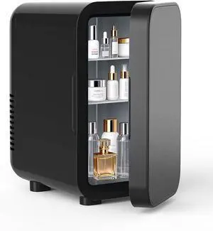 Skincare Fridge with Glass Panel, 6L Mini Fridge for Home/Car, AC/DC Portable Thermoelectric Cooler and Warmer, Makeup Mini Compact Refrigerator for Skincare Cosmetics Food Drinks (Black)