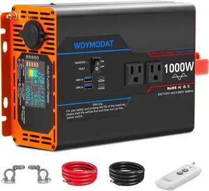 1000W Pure Sine Wave Inverter, Car Power Inverter 12V to 110V 120V, DC to AC Converter Generator with AC Outlets 3.0A USB Type-C, Remote Controller LCD Display Truck Inversor for Vehicles, RV