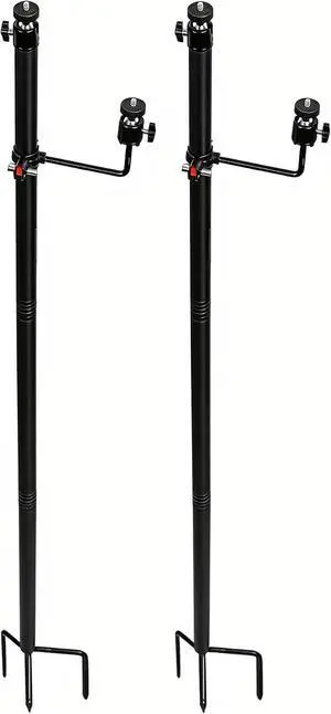 56'' Heavy Duty Trail Camera Mount with Solar Panel Arm - 2-in-1 Adjustable Steel Ground Stake, 360° Swivel Mounts, 3-Spike Base for Hunting/Outdoor Security Camera & Solar Panel(2 Pack)