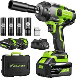 Cordless Impact Wrench 1/2 Inch: Max 1500Nm (1100Ft-lbs) 1/2 Impact Gun - 20V 4Ah Battery, 3-Speed, 4 Sockets, LED Light, Variable Speed Impact Driver for Car Tire, Mower Lug Nut
