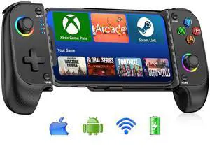 Wireless Mobile Gaming Controller, Phone Controller for iPhone/Android with Big Grip,Led Light,Hall Effect Joysticks, Cell Phone Slide Controller for Handheld Gaming
