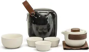Travel Tea Set, Mini Kung Fu Tea Set,Lightweight Design with Tea Infuser Portable Bag for Outdoor Picnic (Travel White)