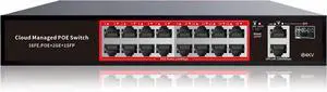 PoE Switch with 16 POE Ports +2 Gigabit Uplink,1 x 1.25G SFP,802.3af/at PoE+ 100Mbps, 240W Built-in Power, Extend to 250Meter,Unmanaged Metal Plug and Play
