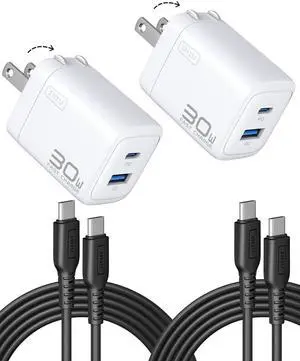 for iPad Air Pro Charger, 30W PD QC Fast Charging, Dual Port Foldable iPad Charger with Black Cable, GaN Tech USB C Power Adapter for iPhone 17 16 Pro Max, iPad 11 Air, Kindle Samsung S25 White