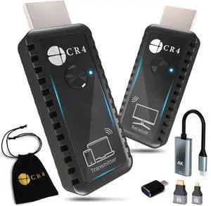 CR4 Wireless HDMI Transmitter and Receiver, Low-Latency 5G, Plug & Play, 4K In/1080P Out, Extender Kit to Stream Video/Audio from PC/Laptop/USB-C Phone (Like iPhone 15 or Newer) to Monitor/TV (Black)