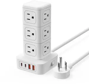 ORICO Power Strip Tower with Multiple Outlets, Tower Extension Cord with 12 AC Outlets 4 USB Ports (2 USB C), Space Saving Design, 5FT Cord Power Tower for Home, Office, Dorm - TPP20