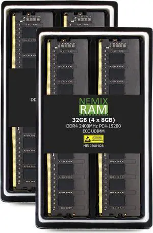 NEMIX RAM 32GB (4X8GB) DDR4 2400MHZ PC4-19200 1Rx8 1.2V 288-PIN ECC UDIMM Unbuffered Memory KIT