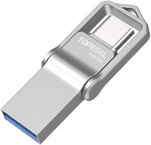 TOPESEL 128GB USB C Metal Flash Drive 2-in-1 OTG USB 3.0 + Type C Thumb Drive, UDP-Tech Waterproof Portable Jump Drive Swivel Design with Keychain Compatible with iPhone 17, Smartphones, Tablet, PC
