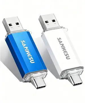 2-Pack 128GB Dual USB 3.0 Flash Drive USB C & USB A 2-in-1, Thumb Drive for Type-C Phones, PC, External Storage for Photos/Videos/Files