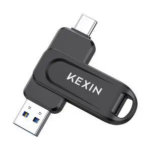 KEXIN 128GB USB C Flash Drive Dual Thumb Drive 100MB/s Swivel USB-A & Type-C USB Drive 3.0 Memory Stick for Smartphone Tablet iPhone 15/16 Car Game Console, 128GB Black