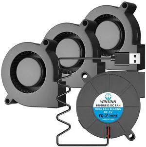WINSINN 50mm 5015 Tiny Cooling USB Blower Fan 5V, 50mm Micro Mini USB 5 Volt Fans Blower Turbine Turbo Dual Ball Bearing, 1000mm/39in Cable Brushless Cooling 50mmx15mm (Pack of 4Pcs)
