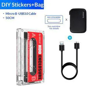 2.5'' Hard Drive USB3.0 Type-C HDD Enclosure External Transparent HDD Case DIY Stickers for SSD HDD Cassette Tape Design