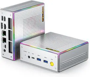 PELADN Mini PC, Ryzen 7 7840HS (8C/16T, Up to 5.1GHz),Radeon 780M 32GB DDR5/1TB SSD,Dual HDMI/Type-C,Triple-Display,WiFi6, Business Small Desktop PC RGB Light