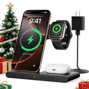 • Compatibility: For iPhone 17/16/15/14/13/12 series;11/X/8 series(with magnetic phone case), For Apple Watch S10/9/ 8 / 7 / 6 / 5 / 4 / 3 / 2 / SE / Ultra (Note: Only for Apple Watch, not for Samsung or other Watch), For Airpods 2 / 3 /4/ Pro / Pro 2 (Note: Airpods 2/3 require wireless charging case), Wireless Charging, Multi Device Charging, Magnetic, Magsafe Compatible, Travel