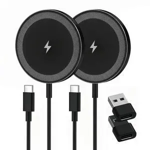 Magnetic Wireless Charger Charging Pad: 15W Qi Fast Portable for iPhone 17 16 15 14 13 12 Series & AirPods 4 3 2 Pro Qi2 Ready-USB-C/A Dual Ports,Lightweight for Travel Office Home Desk,2 Pack Black