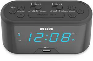 RC571 Digital Alarm Clock Radio with Large Numbers and USB Charging, LED Display, Brightness Display, FM Radio with Presets, Dual Wake, Sleep Timer and Snooze Functions, Black